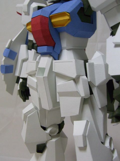 一番の難所は肩の取り付け部。作例のモデルだと外に引き出して肩幅を広げるんですが紙でそれを再現するのは困難。早々にパーツの取り換え方法に舵を切ったものの、その固定方法で試行錯誤、ようやく今の形に落ち着きました。